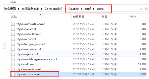 A、进入此路径,用记事本打开httpd-vhosts.conf  文件