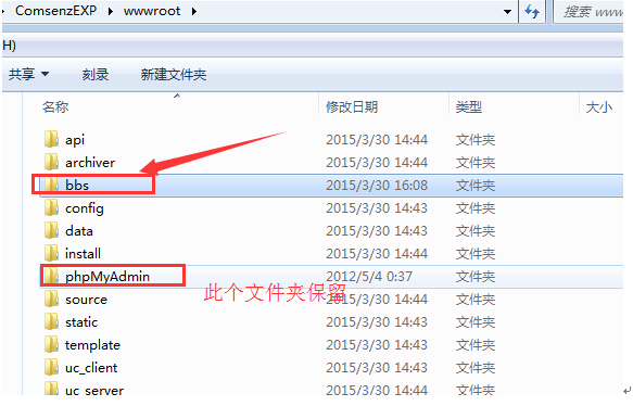 清理wwwroot下面的不要文件(保留phpmyadmin;主要是清空论坛的文件);这样便于文件清晰明了
