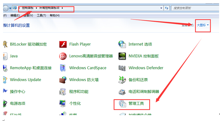 A:进入电脑控制面板------查看方式选择 大图标---------点击管理工具