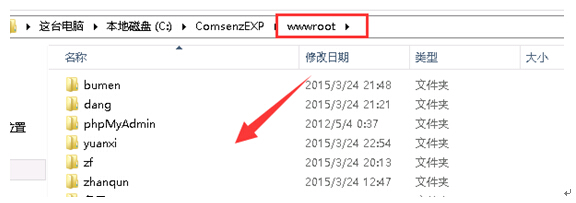 打开安装PHP环境的目录,默认是在C盘,一般建议选择安装在D盘或其他盘;创建一个bbs的文件夹,将其他文件都拖到bbs里面(phpmyadmin文件除外)