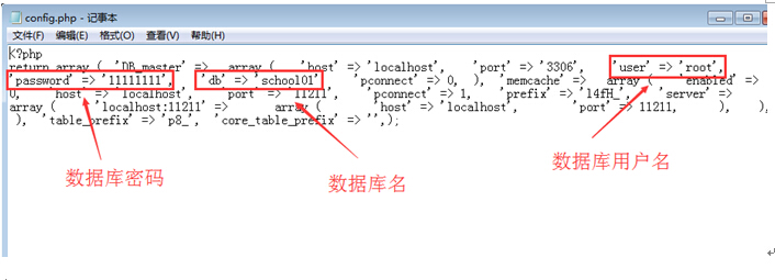 有时候我们需要知道该网站的数据库配置信息,如果数据库用户名、密码、数据库名等这些信息: